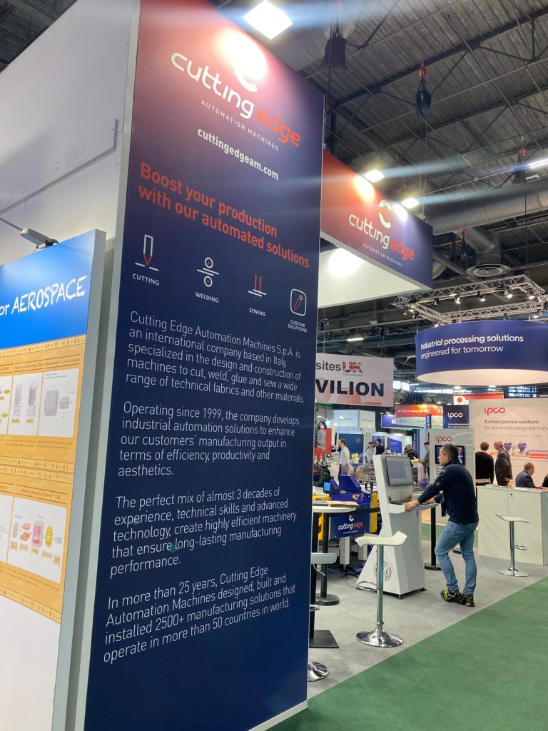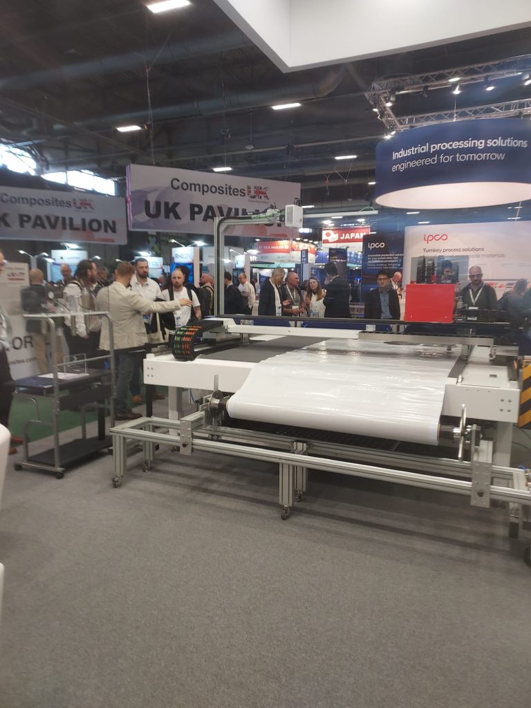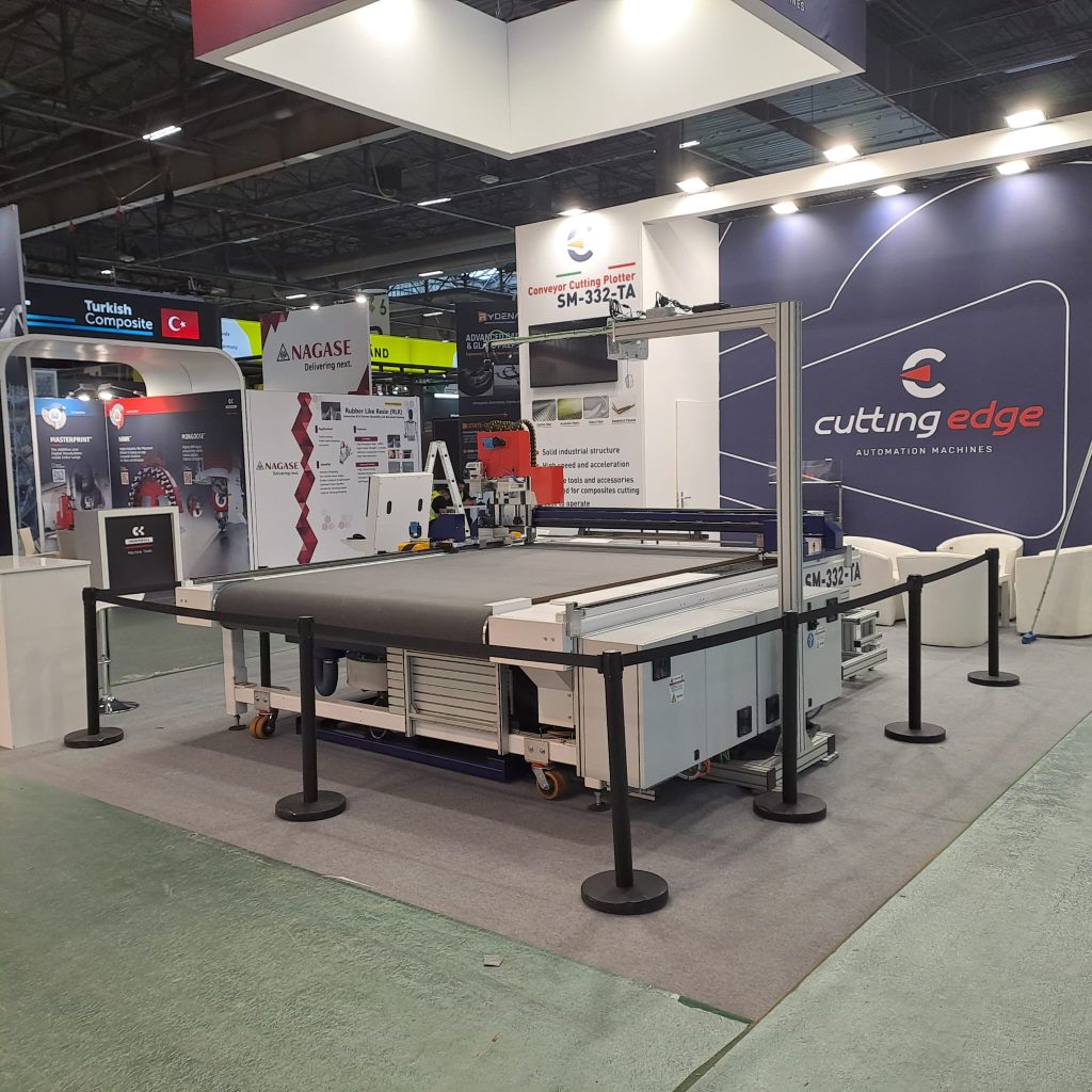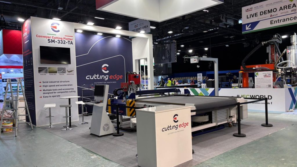 Atendimos la feria JEC World 2026, del 10 al 12 de marzo, donde presentamos nuestro plotter de corte dedicado a los materiales compuestos.