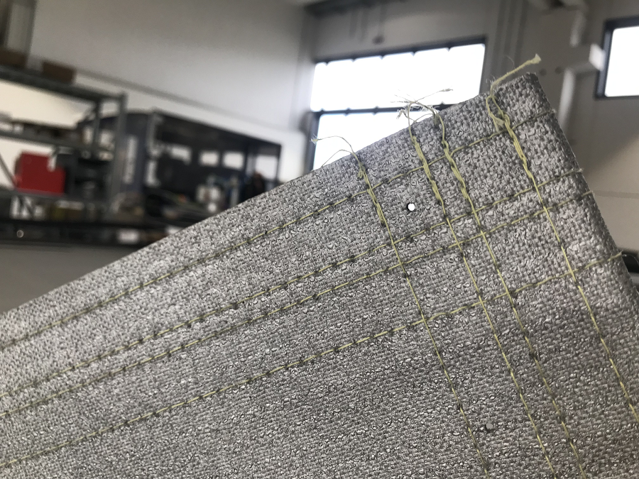 Stazioni di cucitura industriale: progettate per eseguire orlature e rifiniture con precisione, mantenendo l’integrità dei materiali ignifughi.